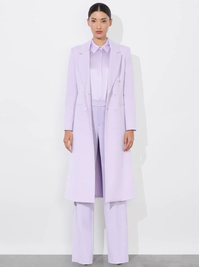 Styling Tip: A lavender blue scarf or knit jumper can transform a classic trench coat into a trend-forward ensemble.